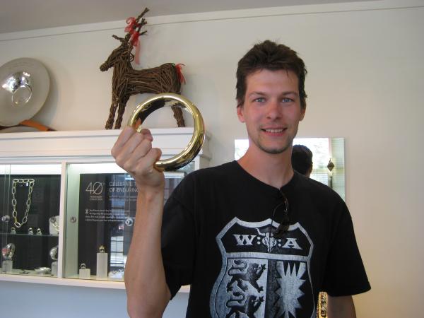 Von Motueka starteten wir erst einmal Richtung Picton. Die Glasmanufaktur hatte noch geschlossen, also machten wir uns auf in die Innenstadt. Dort gabs es ein Cafe in einem Einkaufszentrum, wo man zu jedem Kaffee eine Stunde Internet kostenlos dazubekommt (Internet ist überall in Neuseeland kostenpflichtig, auch auf den Campingplätzen). Nach dem Stillen den Informationshungers ging es dann zurück zur Manufaktur. Es waren sehr schöne Stücke dabei, aber leider nicht so ganz meine Preislage. Danach ging es dann nach Nelson, denn wir wollten ihn sehen, den einen Ring, sie zu knechten, sie alle zu finden, ins Dunkel zu treiben und ewig zu binden. Und dann war es soweit: Eike hielt den Ring der Macht in der Hand,