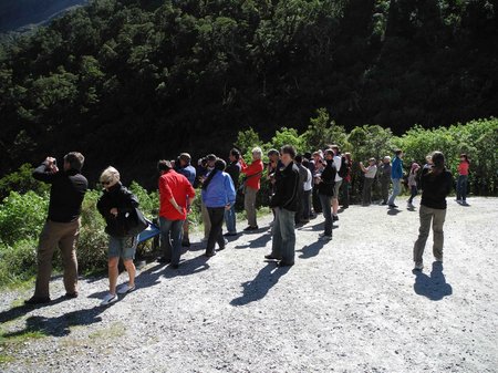 Mehr als 2/3 der Energie aus dem Kraftwerk gehen direkt an die Aluminium-Schmelze in Bluff. Wieder an der Erdoberfläche angekommen, ging es auf der teuersten Straße Neuseelands (2 Neuseelanddollar pro Zentimeter!) über den Wilmot Pass Richtung Doubtful Sound. Zwischendurch gab es immer wieder einen “quick stop for fotos” und die Besatzung des Busses stürmte nach draußen.