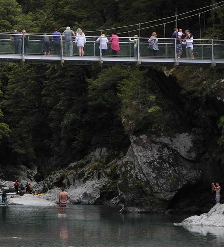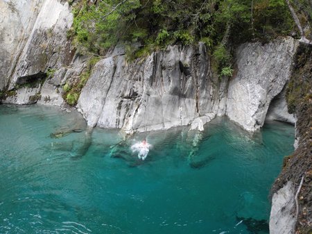An den Blue Pools angekommen, stießen wir neben einer Menge Holländer auch auf zwei verrückte Franzosen, die tatsächlich im einkalten Wasser gebadet haben. Der eine versuchte sich im Klippenspringen,
