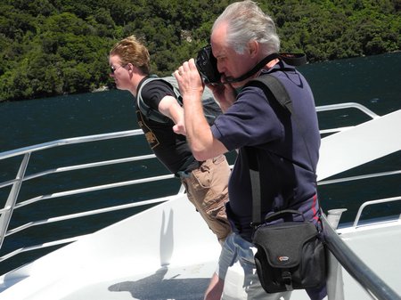 Als wir dann typisch deutsch versuchten, gerade einzuparken, gab es gleich einen netten “Rüffel” von der Besitzerin: “Stellt Euch mal nicht so ordentlich hin, das hier ist kein Parkplatz!” Ok, kalifornischer Kiwi-Humor 😉 Am nächsten Tag am frühen Morgen begaben wir uns dann auf große Tour – wir hatten die Besichtigung des Doubtful Sound gebucht. Per Schiff ging es die erste Stunde über den Lake Manapouri.