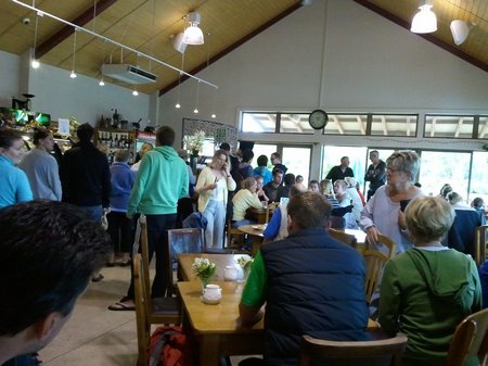 Danach machten wir uns auf in luftige Höhen, auf den Mount John. In 2008 sind wir noch zu Fuß auf den Berg gestiefelt, heute haben wir den bequemen Weg per Campervan gewählt. Auf dem Berg steht neben dem Observatorium auch ein Cafe, das rege besucht war.