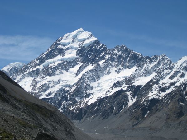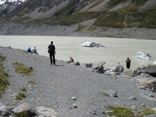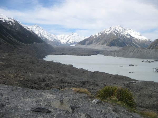 Nach ca. 2 Stunden erreichten wir das Ende des Hooker Valley und hatten einen traumhaften Blick auf dem Mt. Cook (höchster Berg Neuseelands), das Tal und einen Gletschersee.