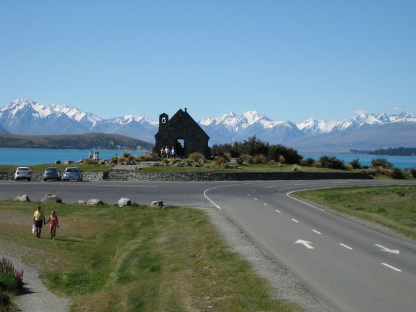 Nach einem kurzen Bummel durch Tekapo und ein wenig Souvenir-Shopping führte uns die Reise dann Richtung Lake Pukaki und Mt. Cook. Auch der Lake Pukaki hat dieses wundervolle türkisfarbene Wasser wie der Lake Tekapo. Nach einigen Foto-Zwischenstops (irgendwie möchte man rund um die Uhr die Berge fotographieren, ständig ergibt sich ein neues, tolles Panorama) kamen wir dann am Fuß des Mt. Cook an.