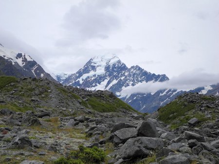 leider lag der Gipfel vom Mount Cook immer in den Wolken.