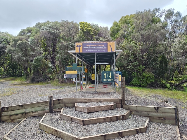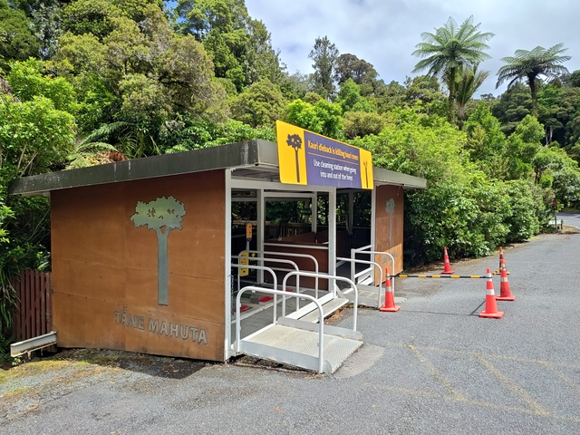 Die Schuhreinigungsstation zum Vater des Waldes (gegen Kauri Dieback – eine Krankheit, die die Kauri-Bäume sterben lässt):
